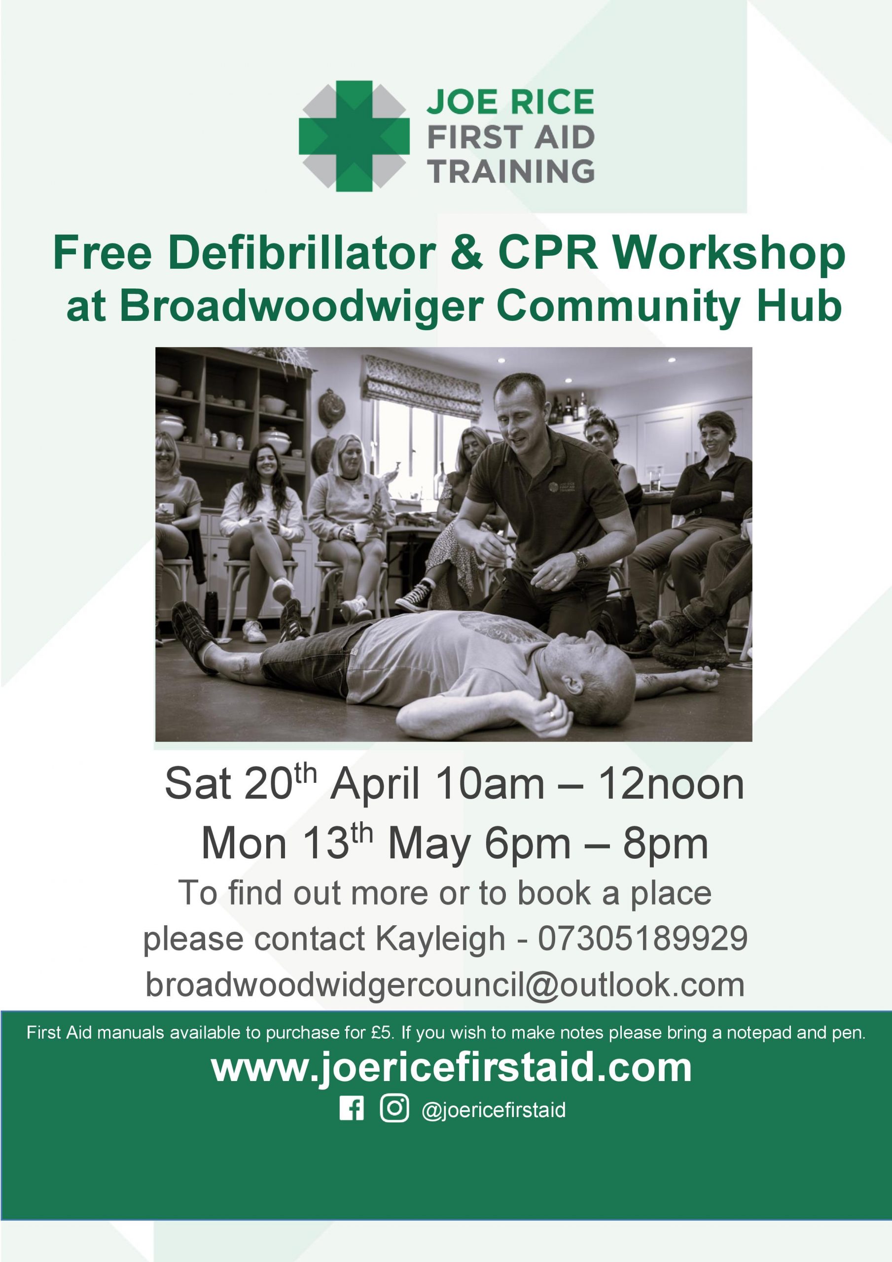 The Parish Council have arranged for Joe Rice to run two first aid courses in the Broadwoodwidger Community Hub.